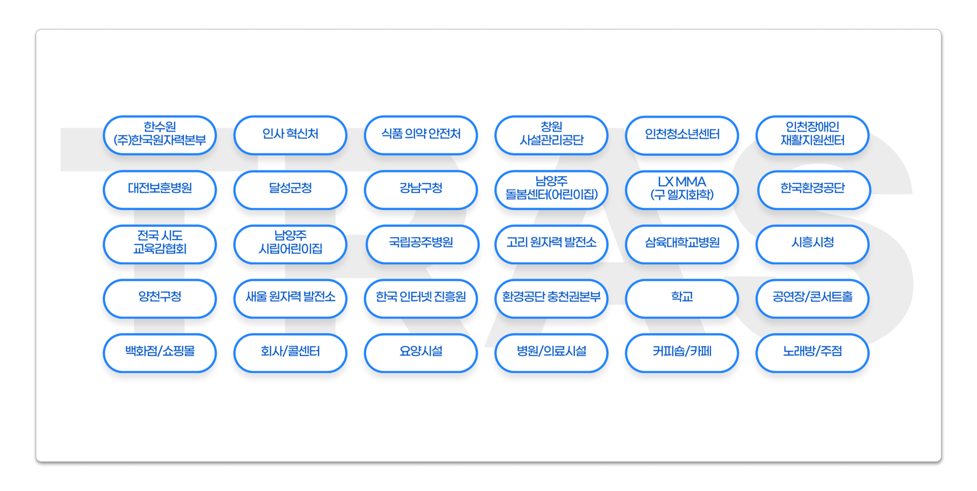 병원, 사무실, 기관, 발전소, 학교 등