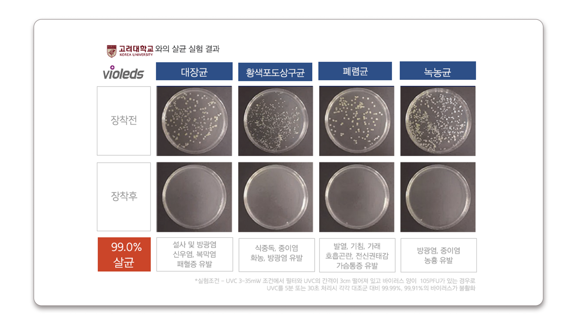 공기살균효과, 결과로 말합니다